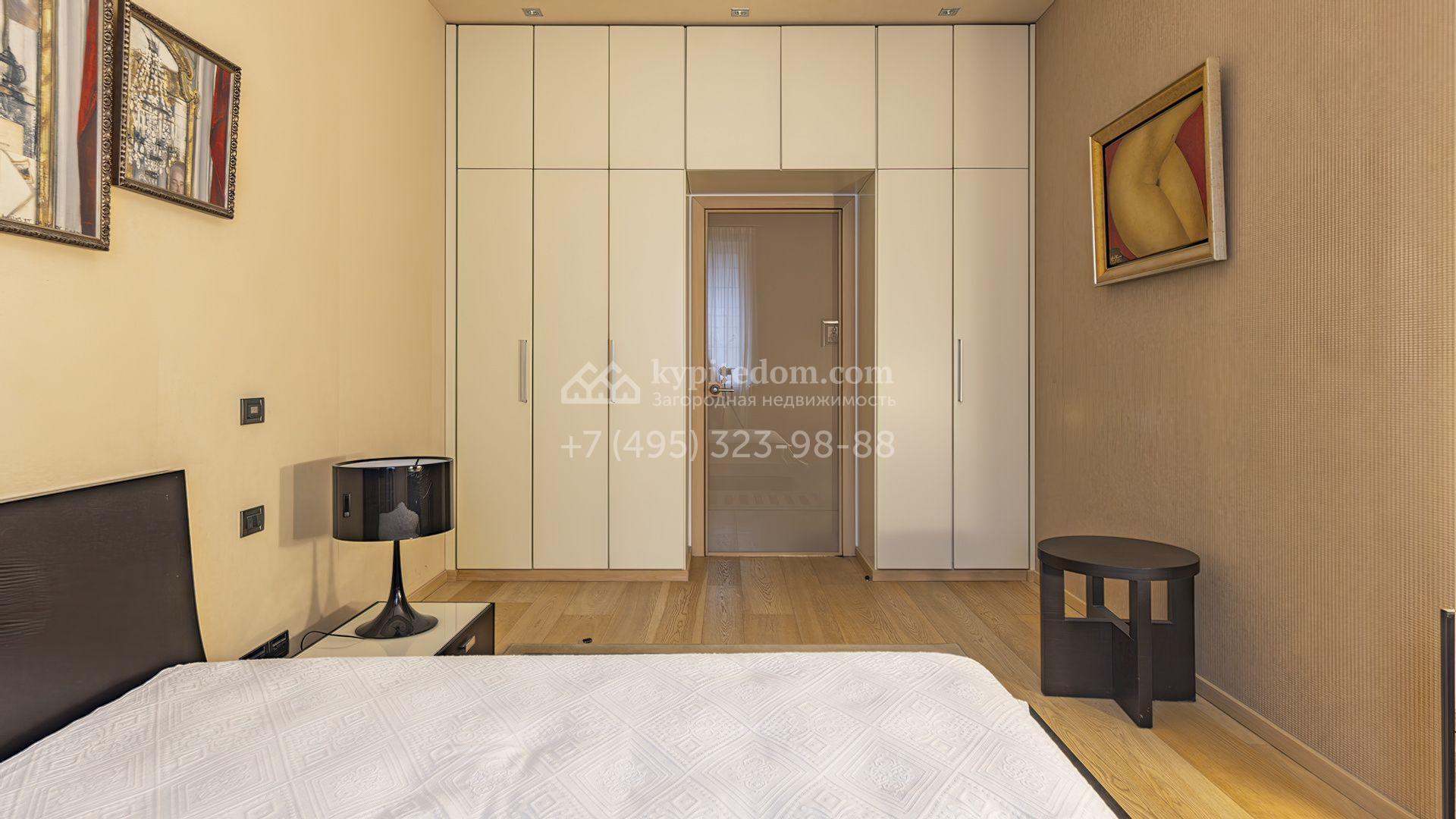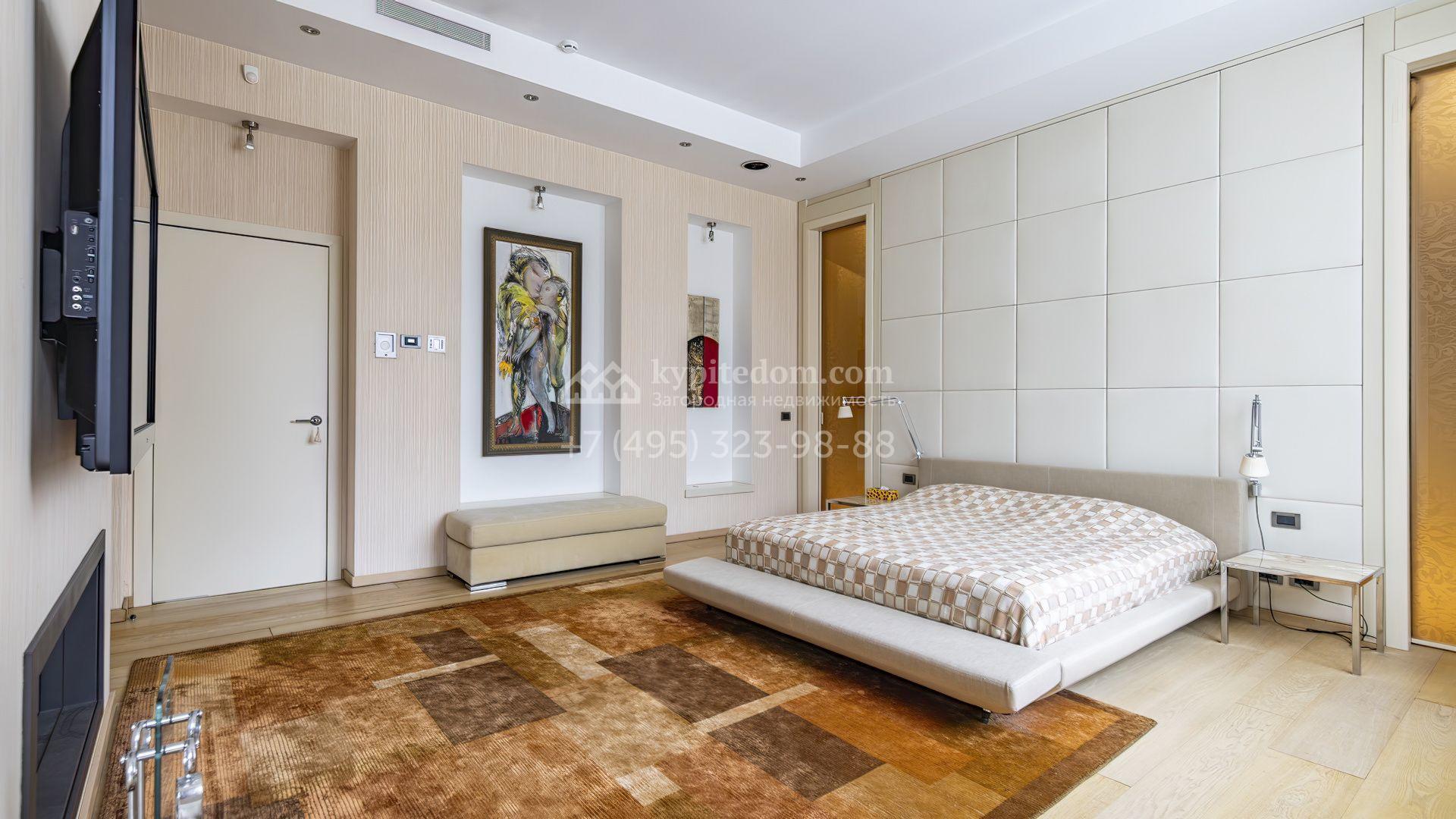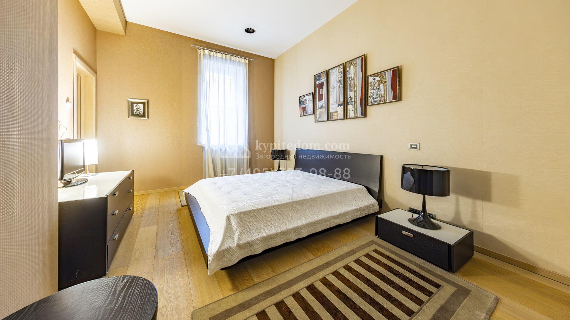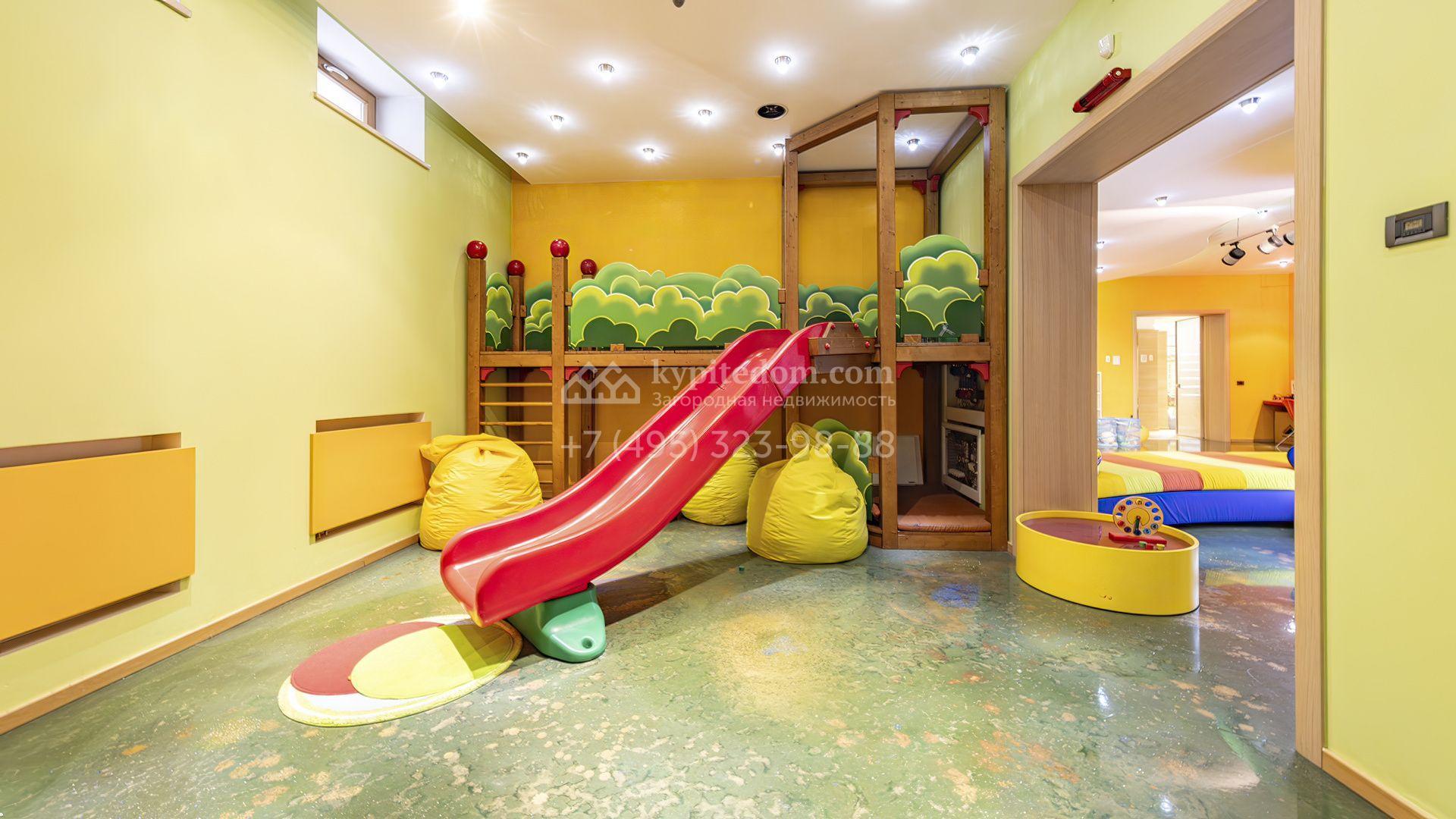 Двухэтажная резиденция площадью 1636 м² расположена на участке площадью 60 соток. Фасад здания выделяется контрастной фактурой — светлый камень и темная древесина сдержанно сочетают скандинавский стиль с современностью. Интерьеры оформлены в стиле минимализм, где живопись и скульптуры становятся ключевыми элементами декора. Из просторной гостиной-библиотеки с двойным светом открывается живописный вид на окружающий лес.