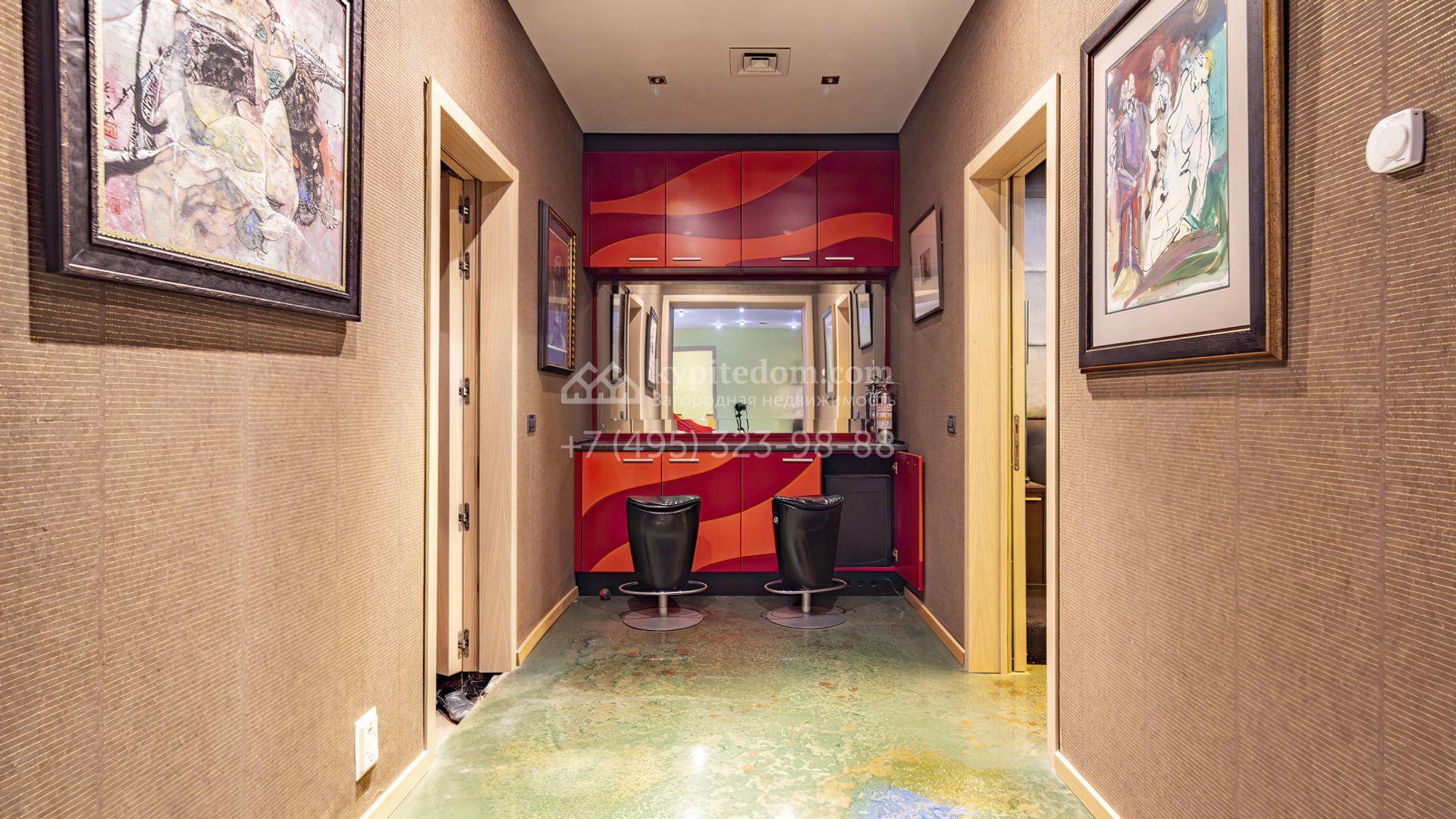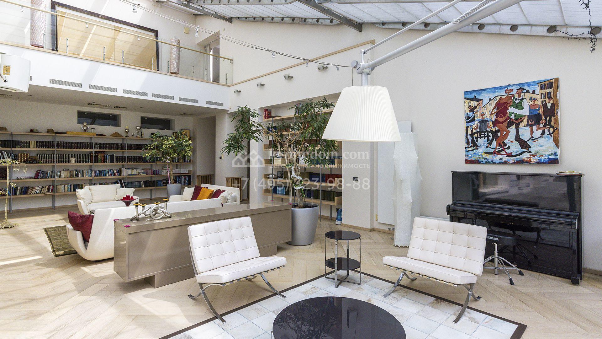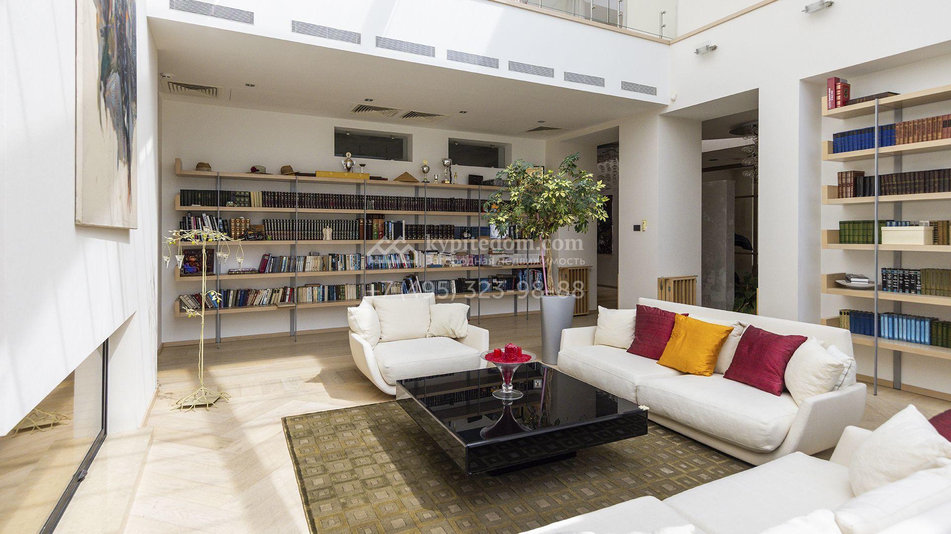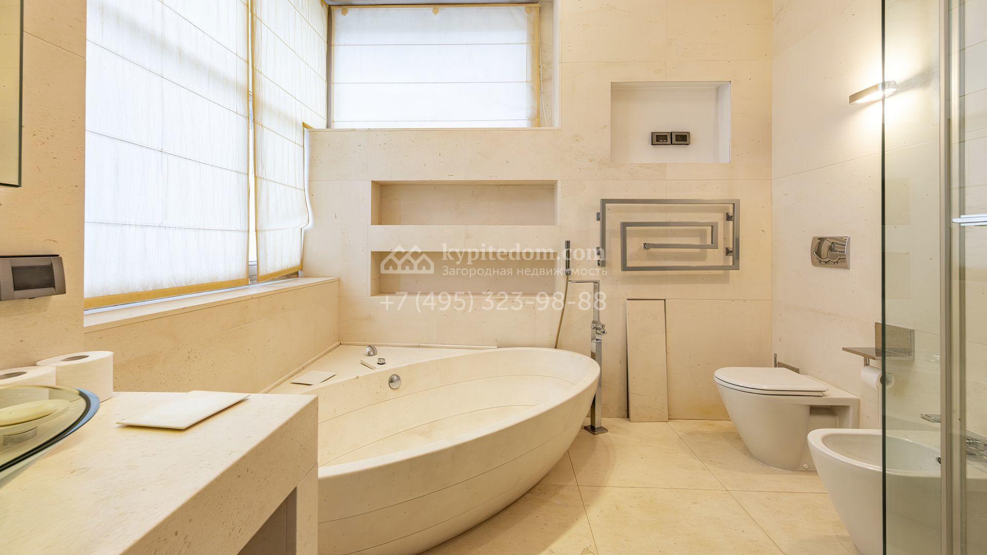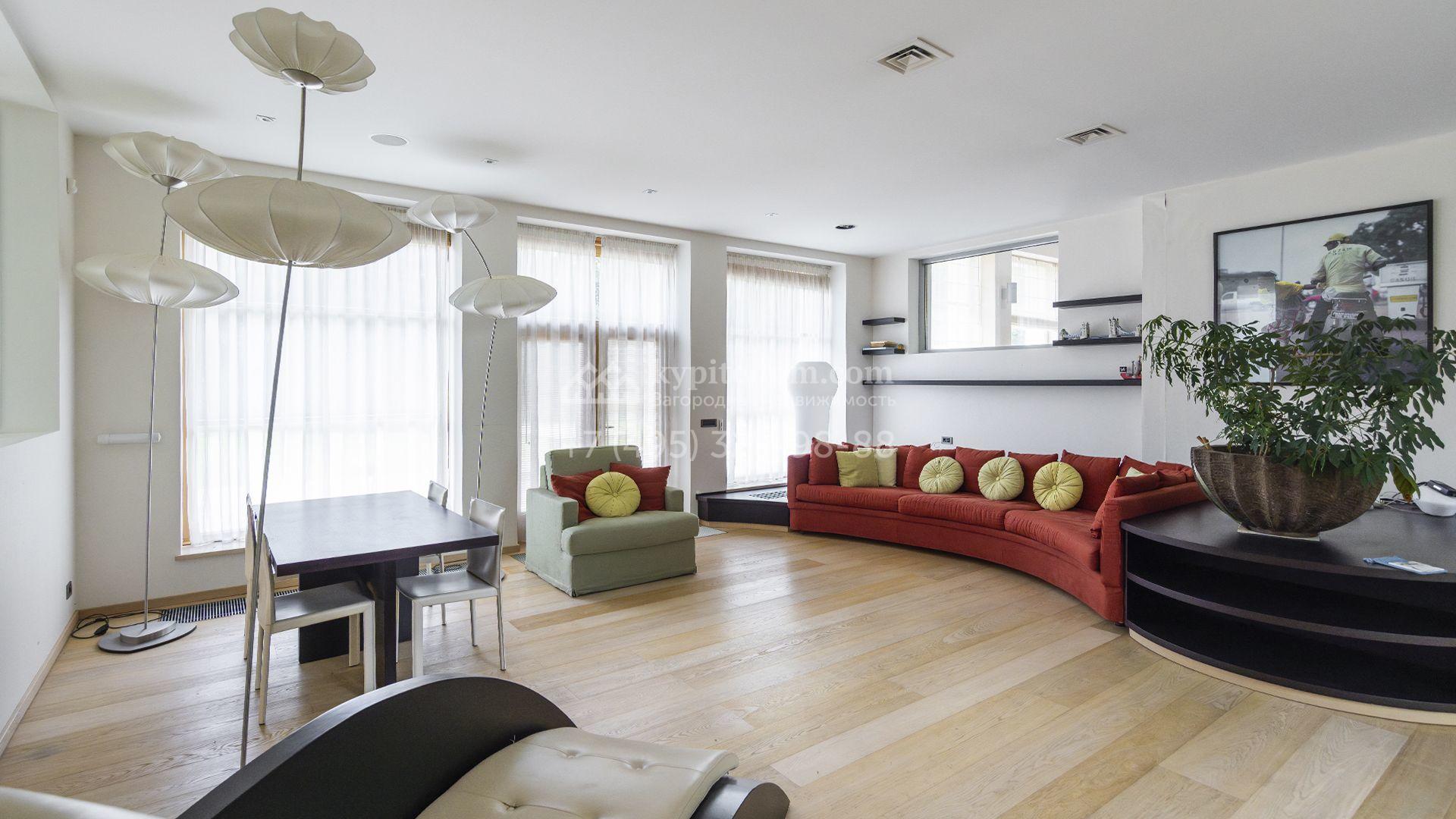Двухэтажная резиденция площадью 1636 м² расположена на участке площадью 60 соток. Фасад здания выделяется контрастной фактурой — светлый камень и темная древесина сдержанно сочетают скандинавский стиль с современностью. Интерьеры оформлены в стиле минимализм, где живопись и скульптуры становятся ключевыми элементами декора. Из просторной гостиной-библиотеки с двойным светом открывается живописный вид на окружающий лес.