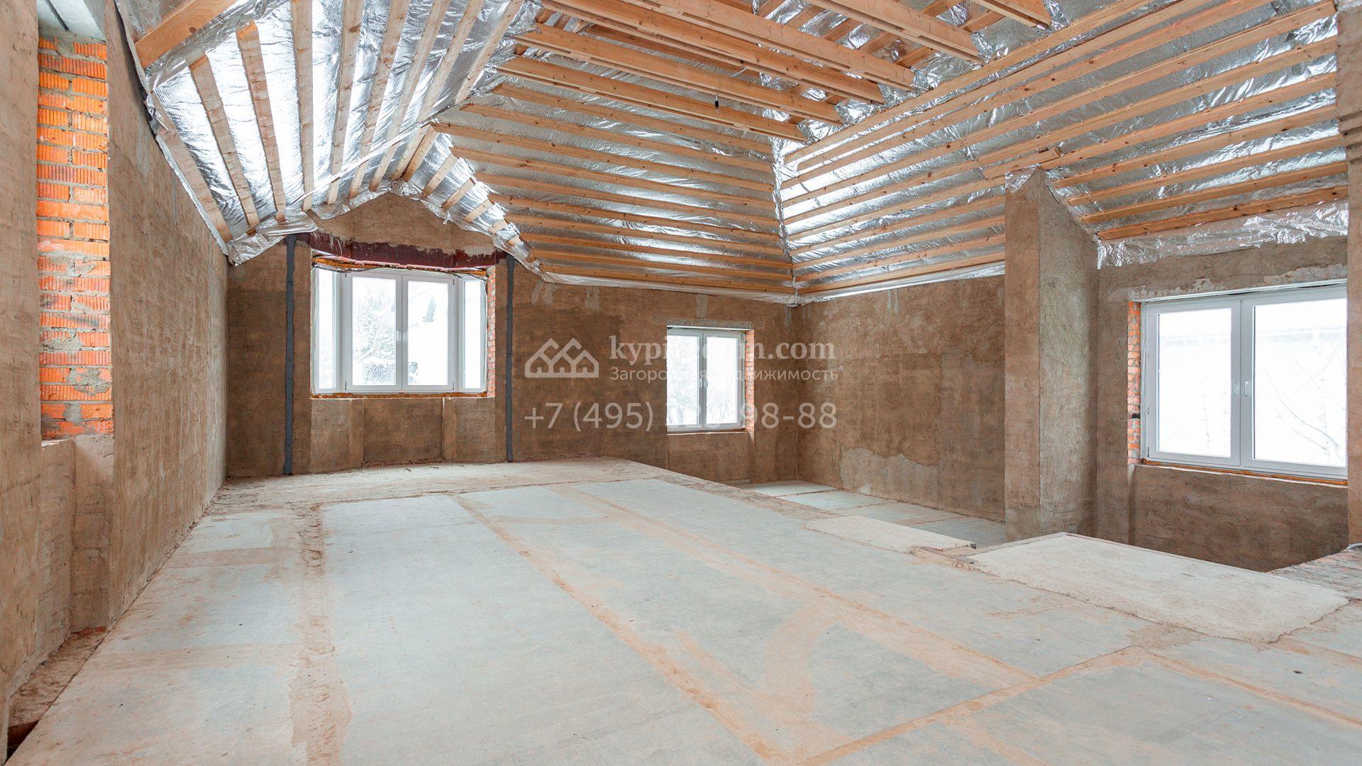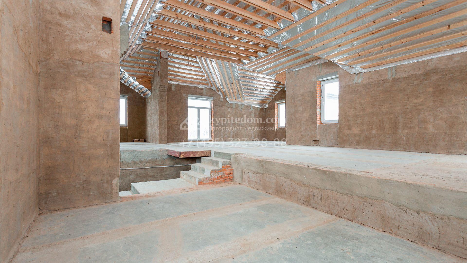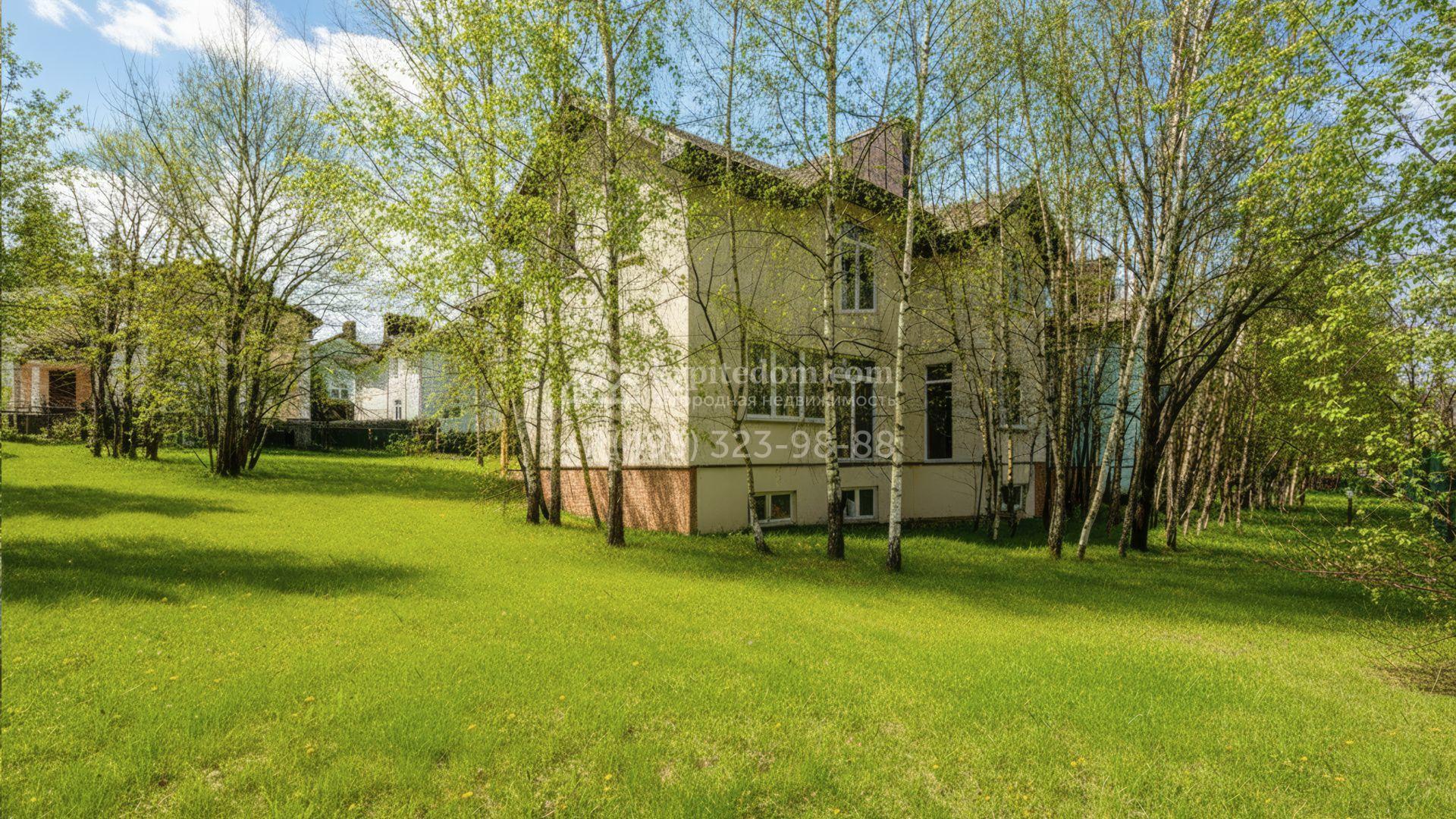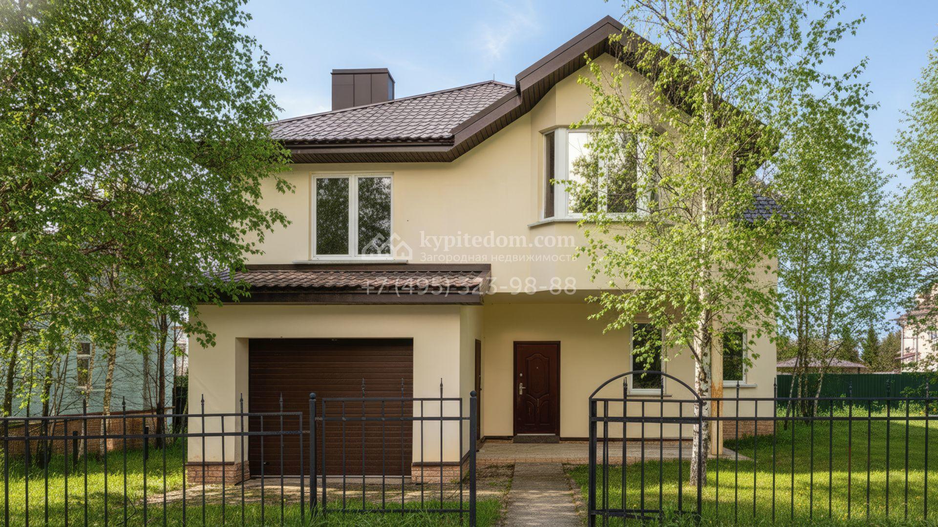 Просторный загородный дом в неоклассическом стиле площадью 330 м² построен на полевом участке 6 соток. Фасад облицован штукатуркой нежно-абрикосового оттенка. Коттедж представлен без отделки. Свободная планировка позволяет спланировать 3-4 спальни, гостиную, кухню, сауну, гардеробные и необходимые технические помещения. Предусмотрен встроенный гараж. На участке растут молодые березы.