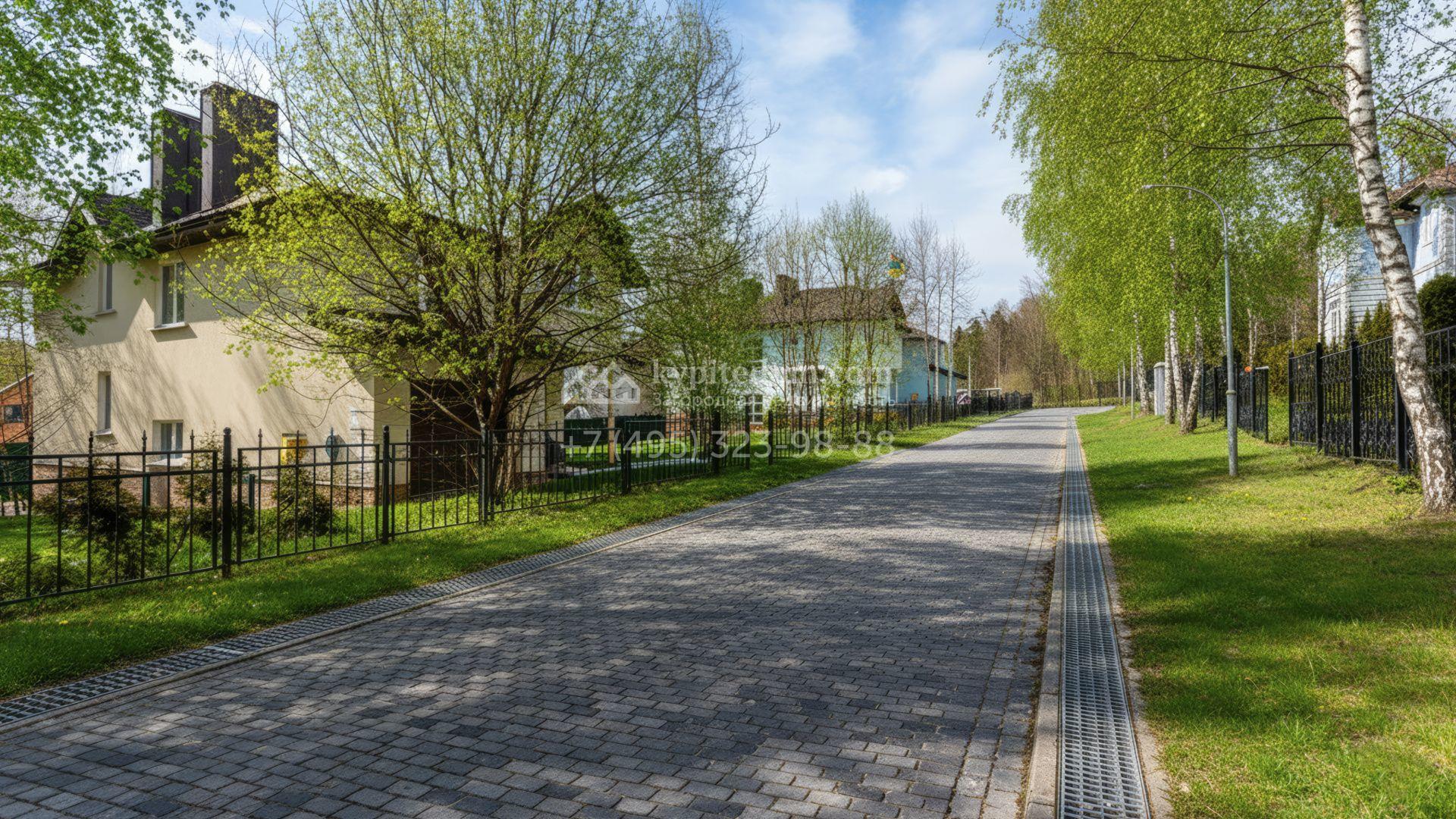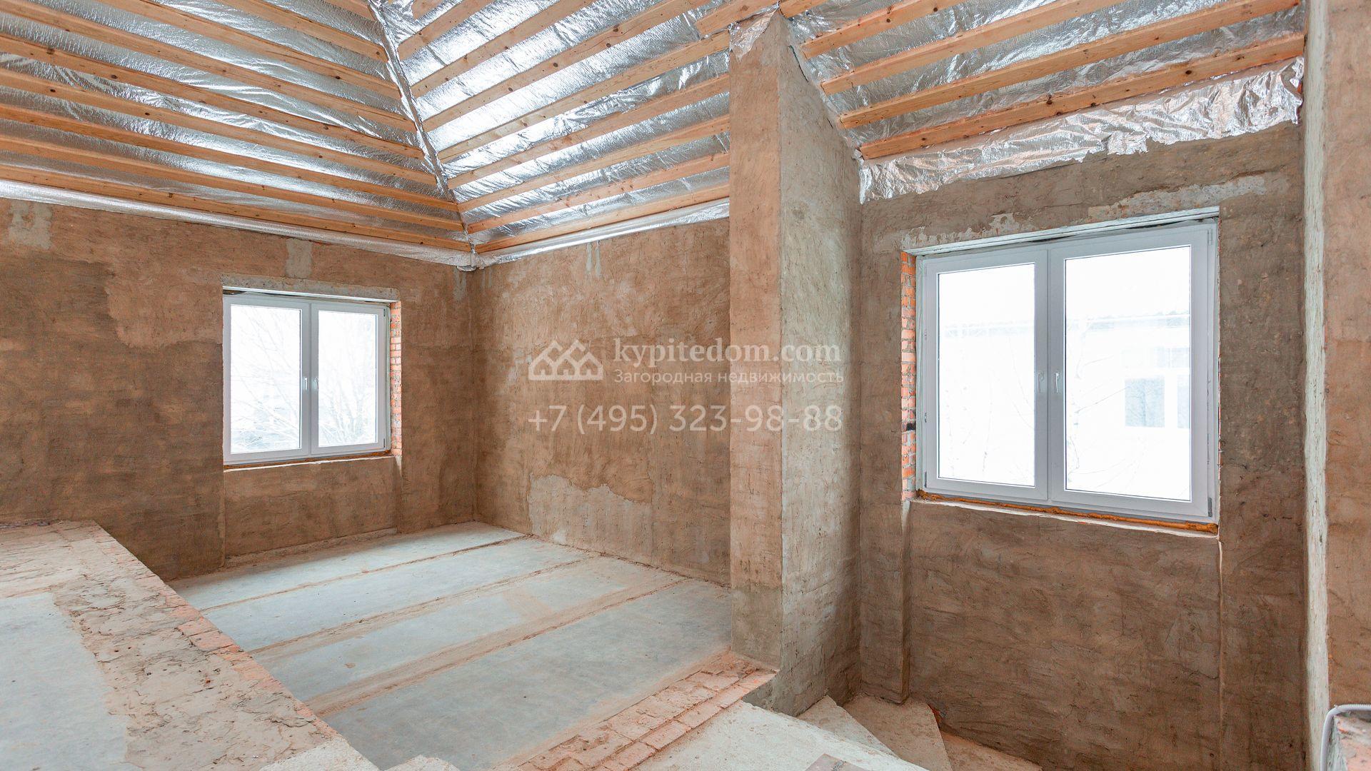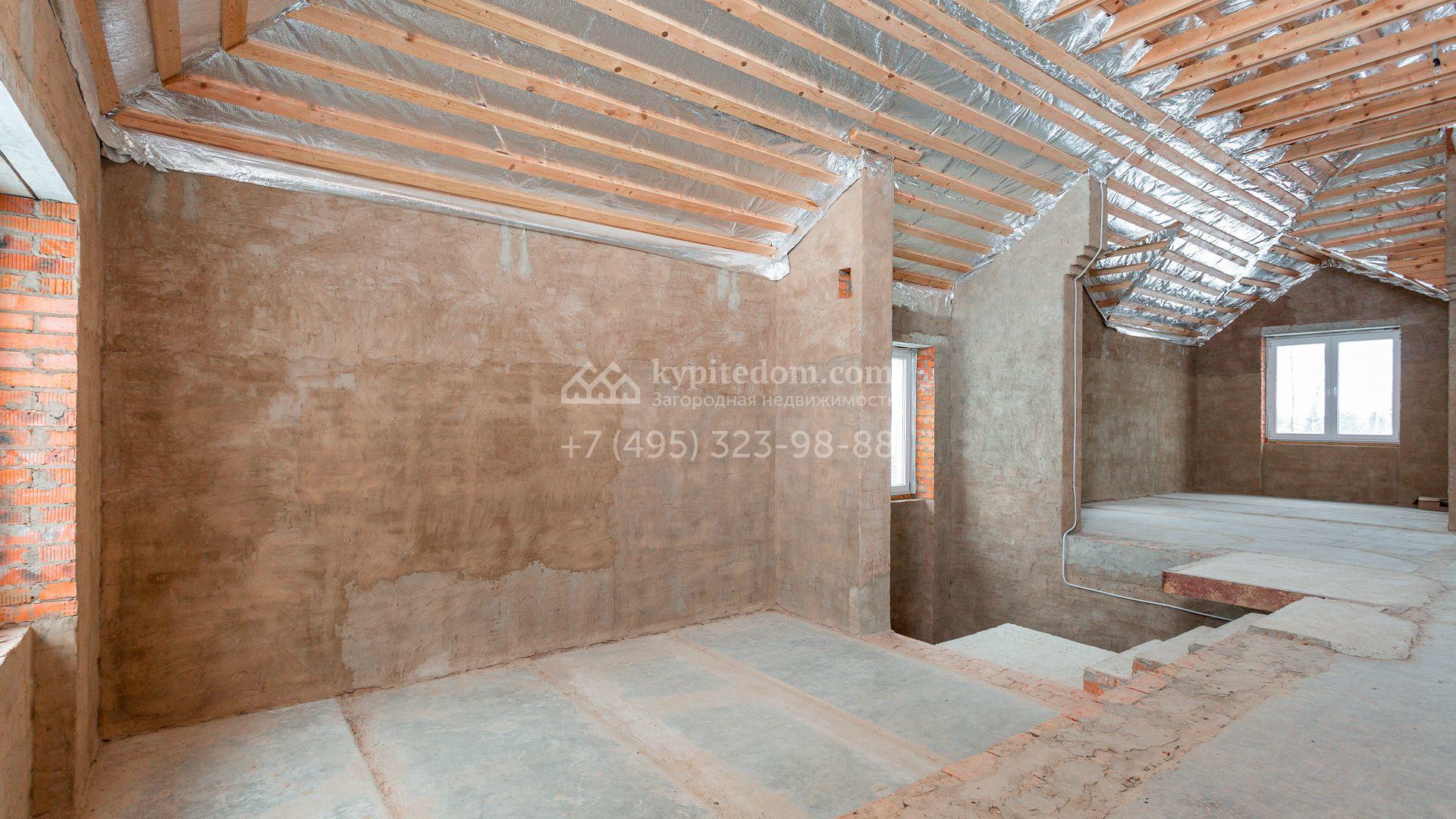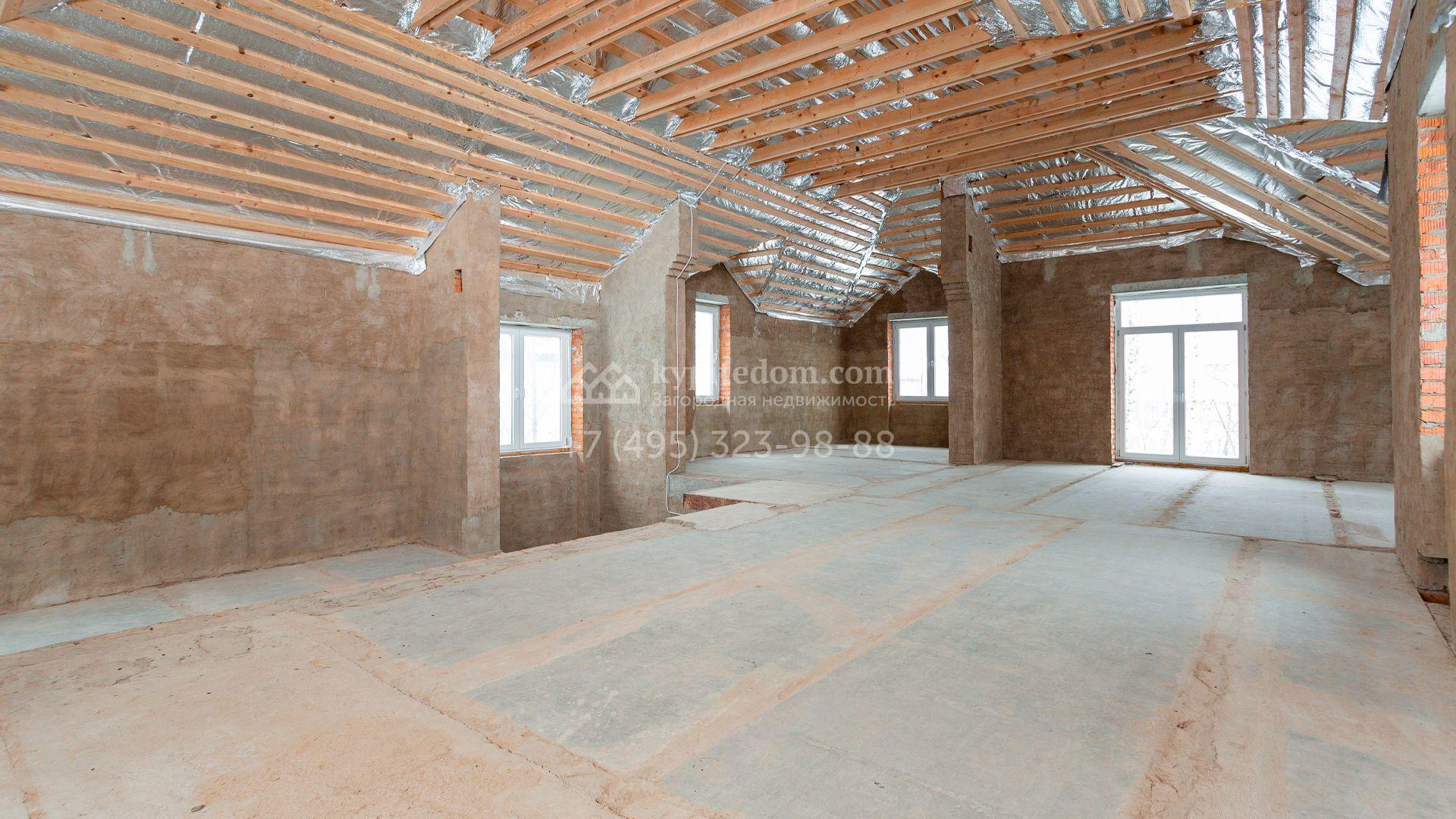 Просторный загородный дом в неоклассическом стиле площадью 330 м² построен на полевом участке 6 соток. Фасад облицован штукатуркой нежно-абрикосового оттенка. Коттедж представлен без отделки. Свободная планировка позволяет спланировать 3-4 спальни, гостиную, кухню, сауну, гардеробные и необходимые технические помещения. Предусмотрен встроенный гараж. На участке растут молодые березы.