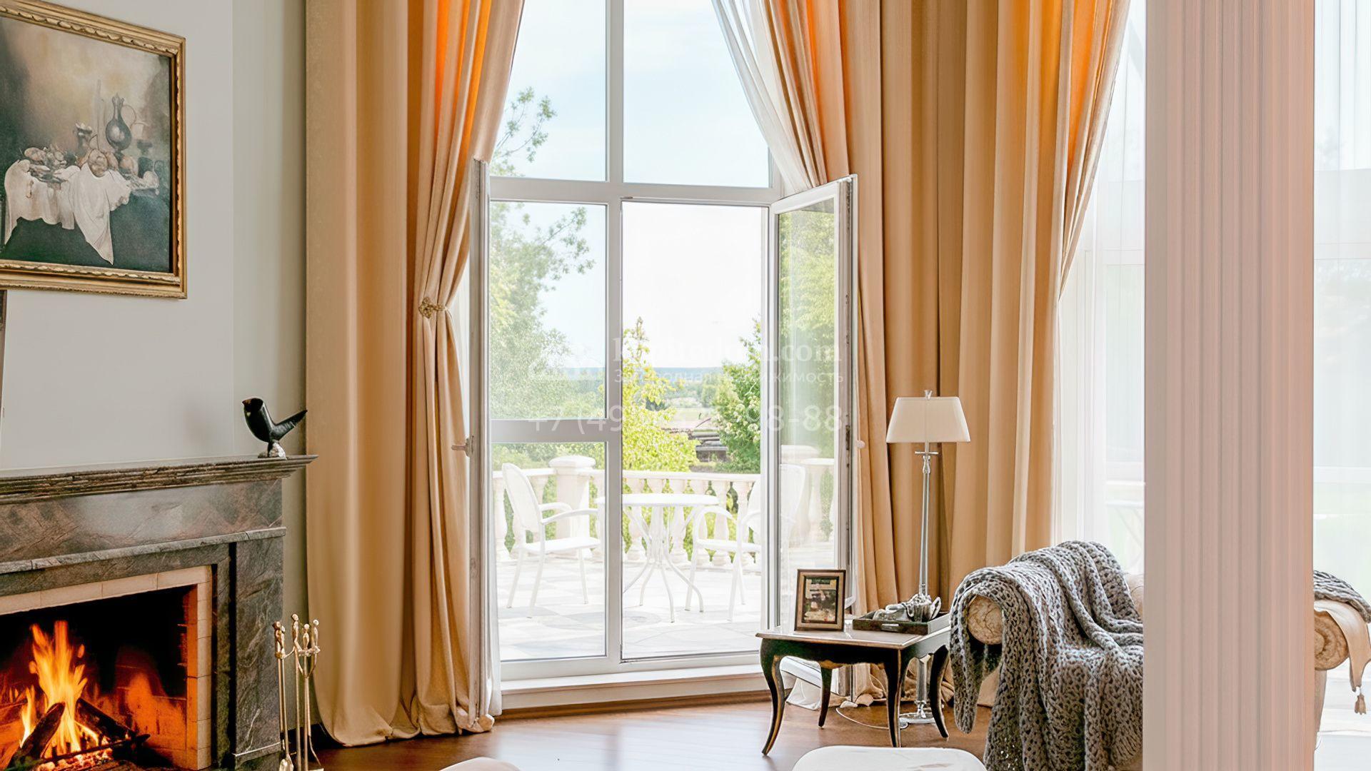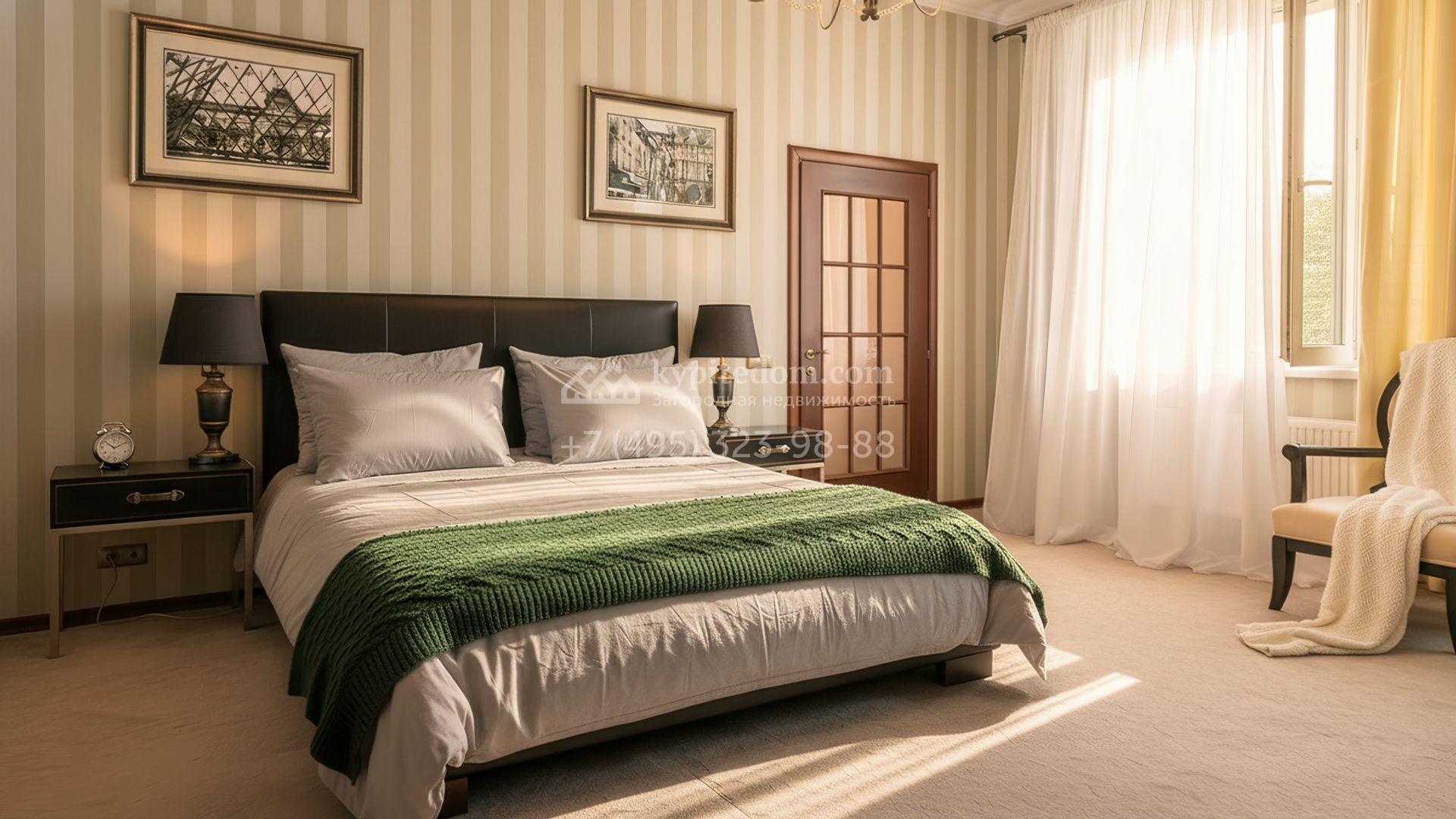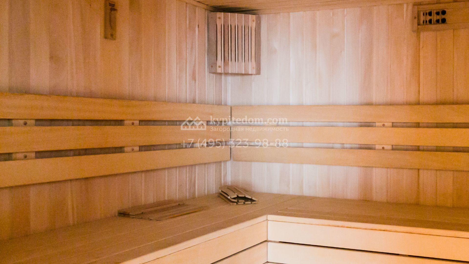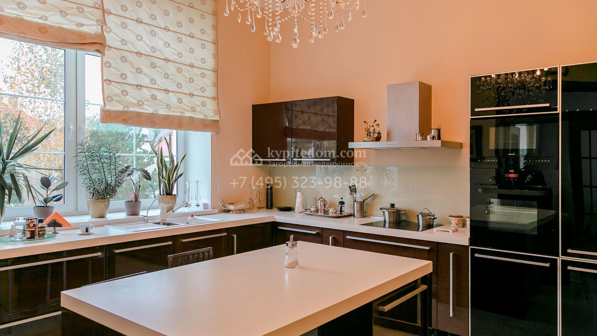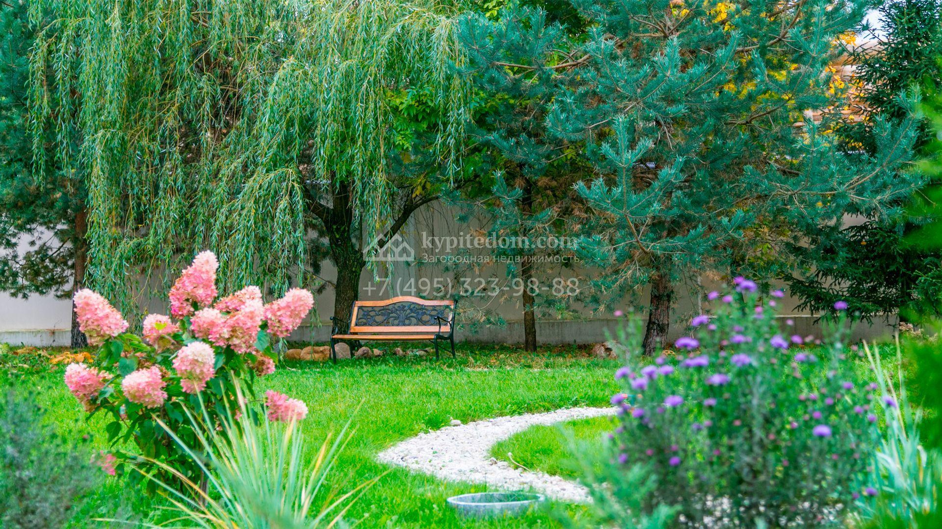 Загородный дом в неоклассическом стиле площадью 600 м² построен на прилесном участке 24 сотки. Бежевый фасад облицован штукатуркой, украшен рустовкой, наличниками и карнизом. Интерьер оформлен в мягких тёплых оттенках. В главном доме на первом этаже расположена парадная гостиная со вторым светом, камином и выходом на террасу. В коттедже спланированы четыре спальни, кабинет и спа-зона, включающая бассейн, сауну и душевую. Резиденция укомплектована мебелью производства Италии и Испании, бытовой техникой. Предусмотрена квартира для персонала с кухней и двумя спальнями. У дома есть гараж на две машины. На участке выполнен ландшафтный дизайн, проложены дорожки, высажены яблони, вишни, сосны и другие растения.