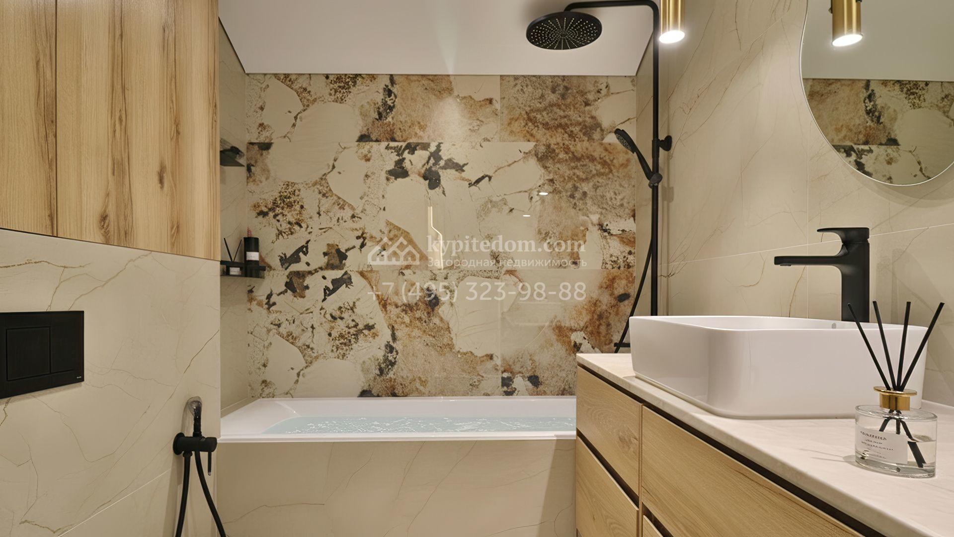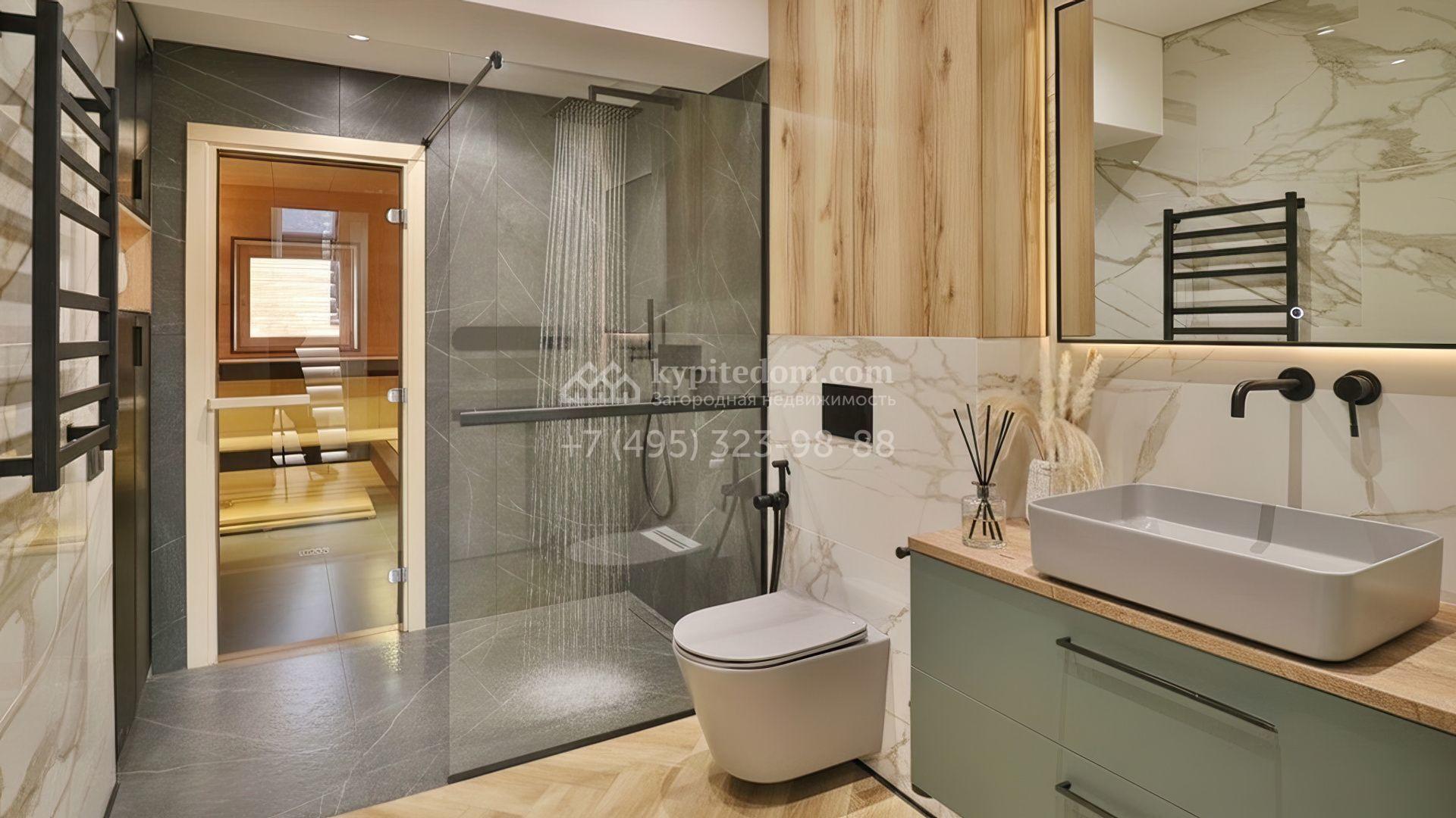 В доме предусмотрено всё для комфорта — система «тёплый пол», кондиционеры Haier, вентиляция с рекуперацией, защита от протечек Base Light. В санузлах установлено оборудование от Boheme, Tece, Excellent, VagnerPlast и Abber. В зоне SPA обустроена сауна из термолипы с печью Karina Nova. Освещение многосценарное — от акцентной подсветки до дизайнерских люстр.
