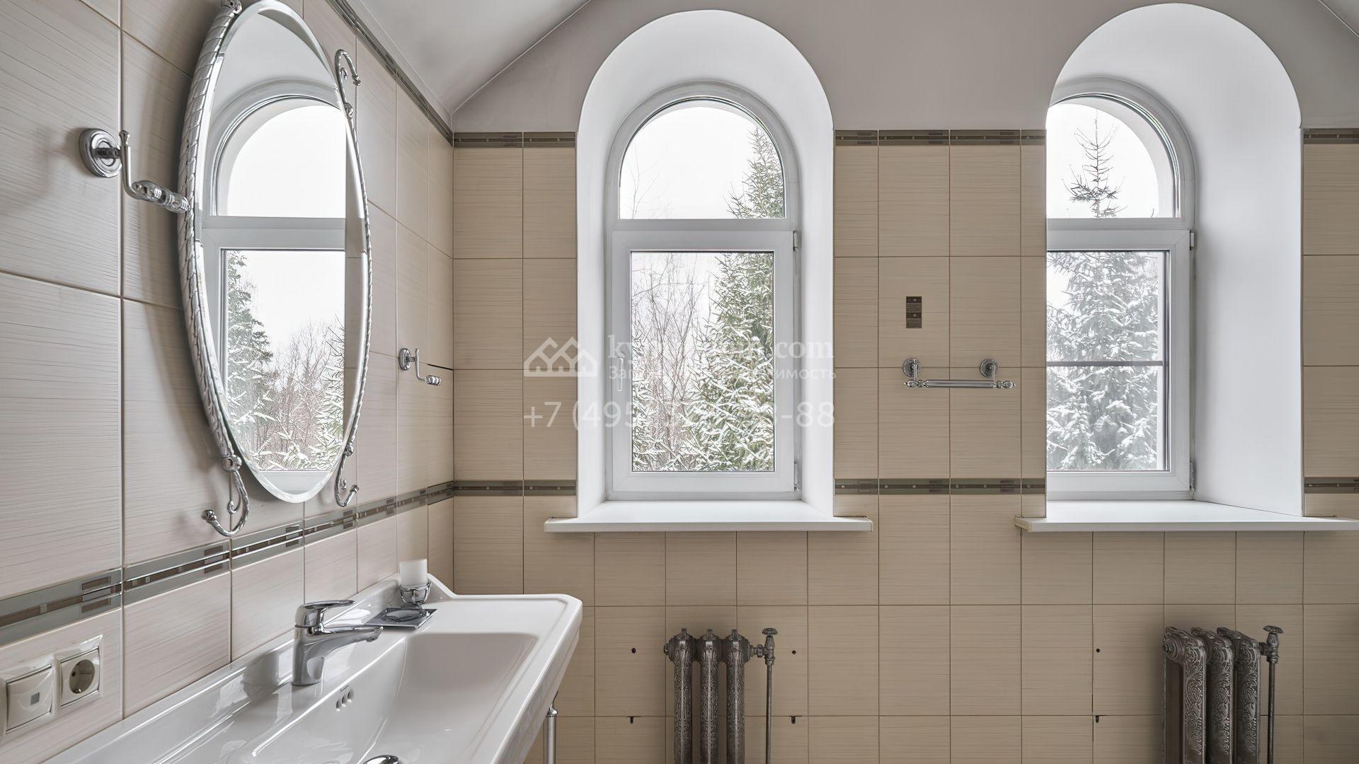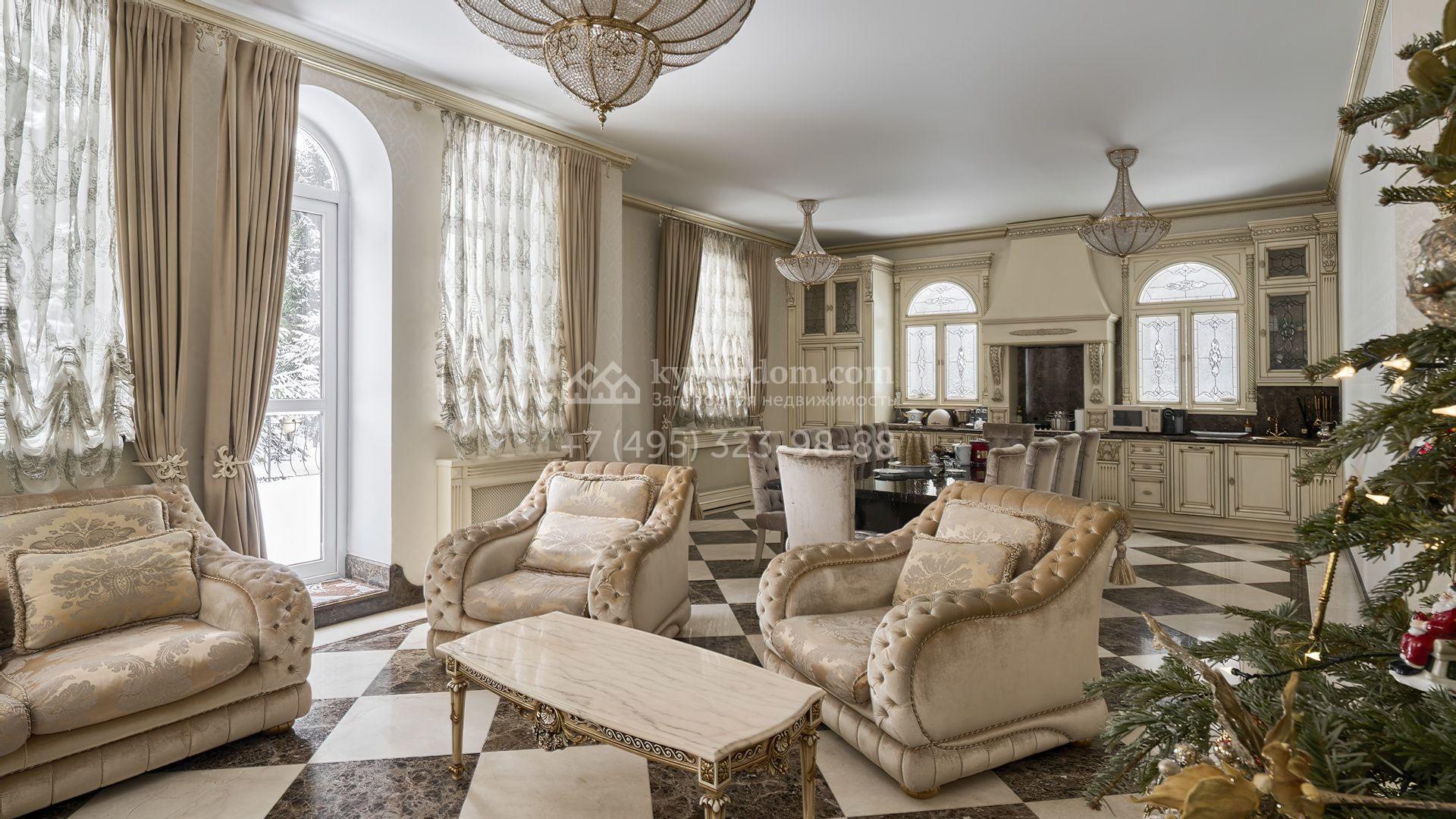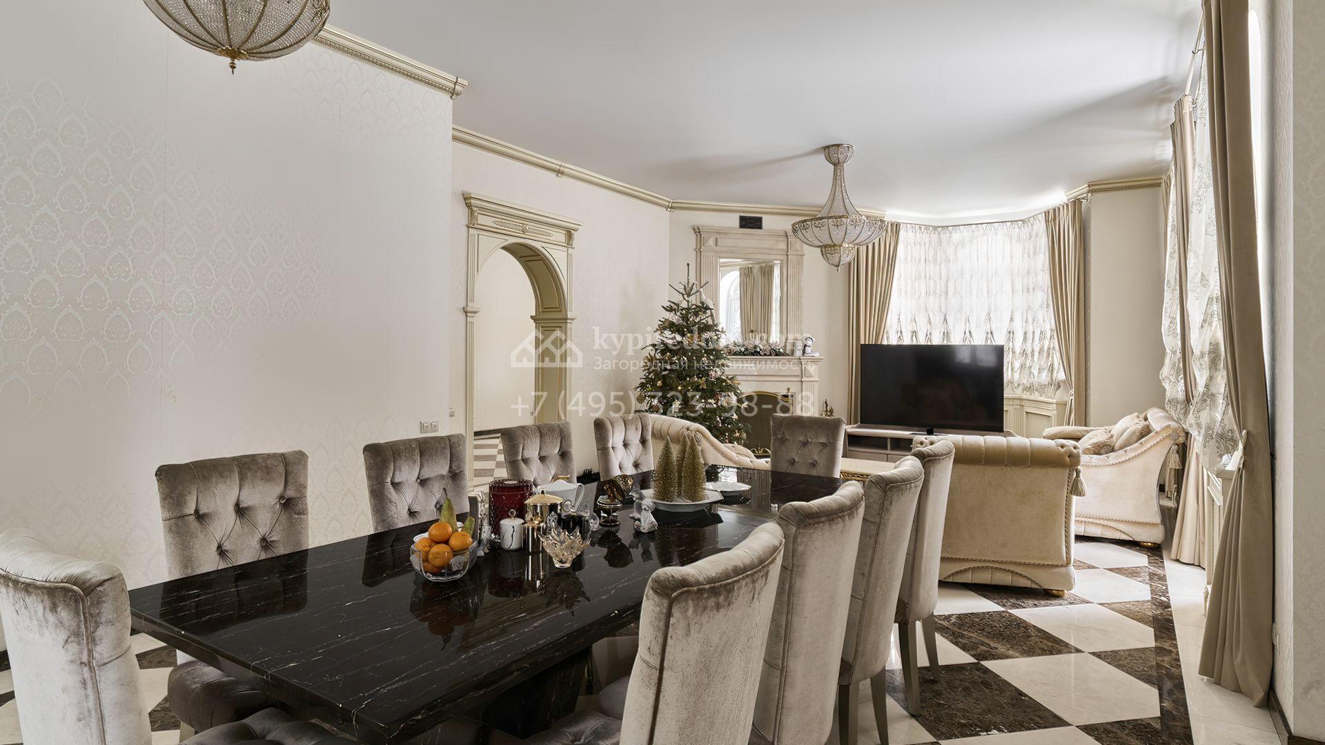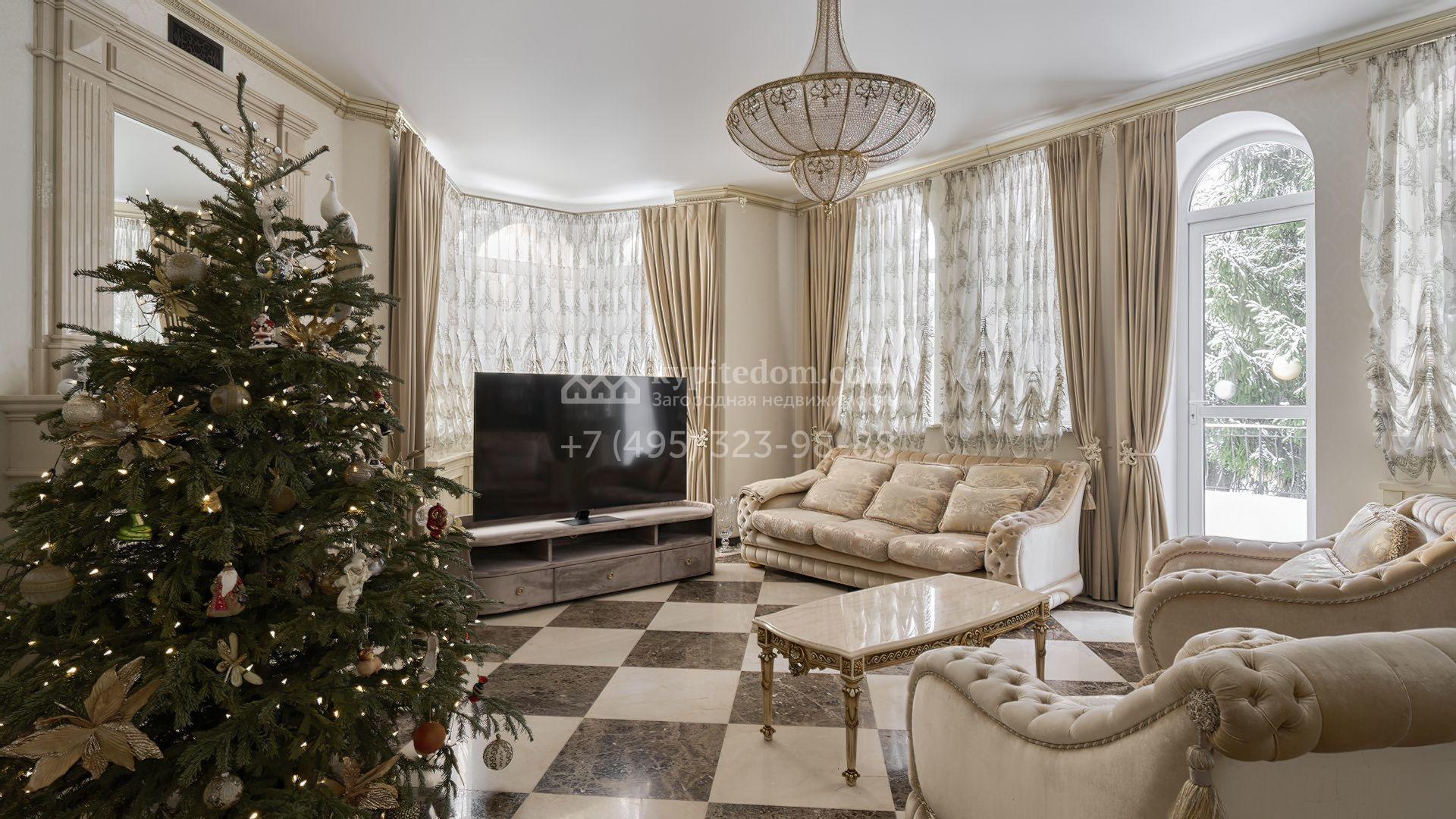 Интерьеры укомплектованы дизайнерской мебелью и техникой от ведущих европейских производителей. Планировка включает 2 спальни с санузлами, гостевую спальню, кухню-гостиную с камином и кабинет. На просторном участке растут березы и ели, проложены дорожки и организовано уличное освещение. Для отдыха в кругу семьи или друзей на территории предусмотрены барбекю-зона, бассейн и гостевой дом с 2-мя спальнями, квартирой для охраны и гаражом.