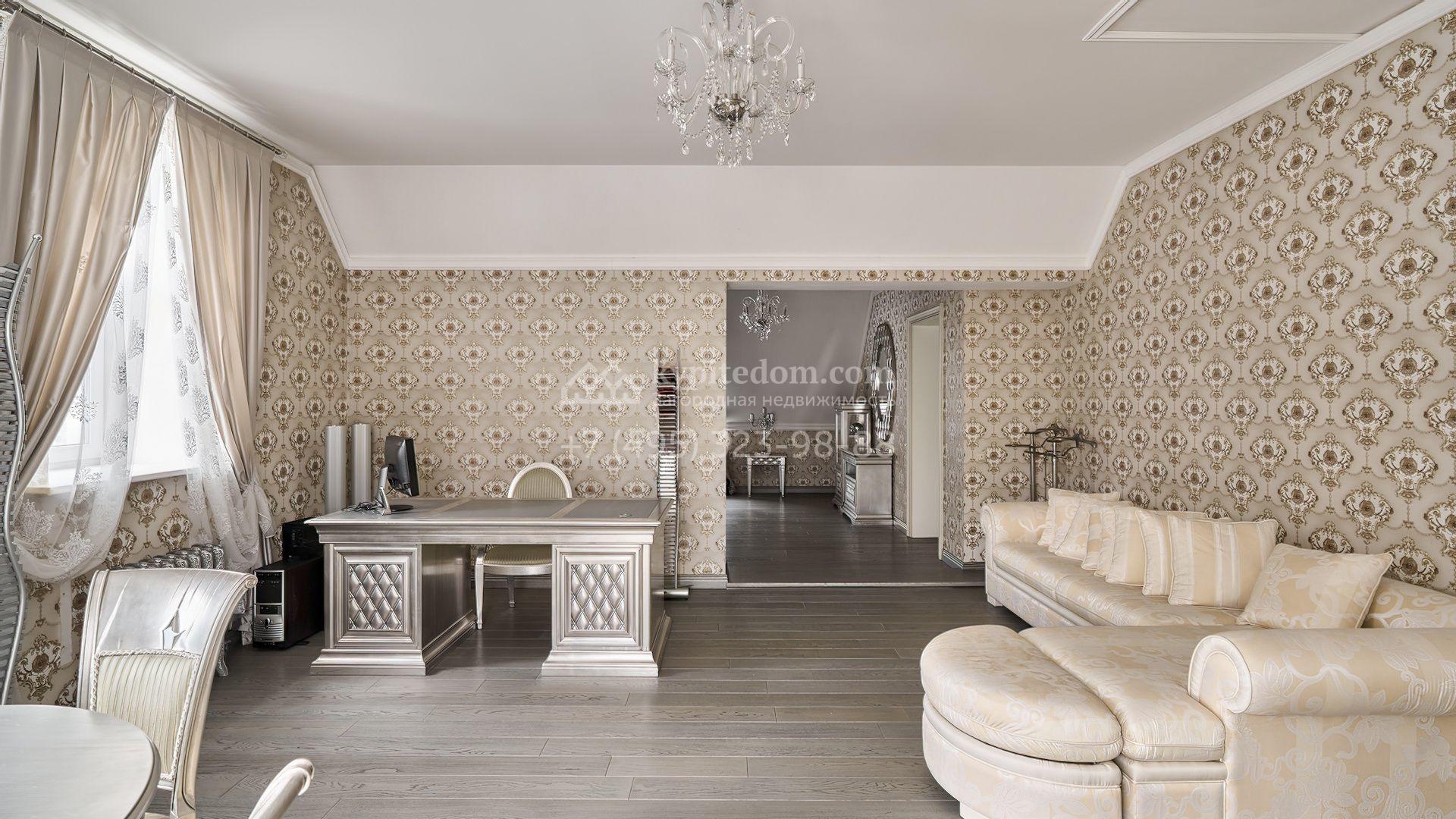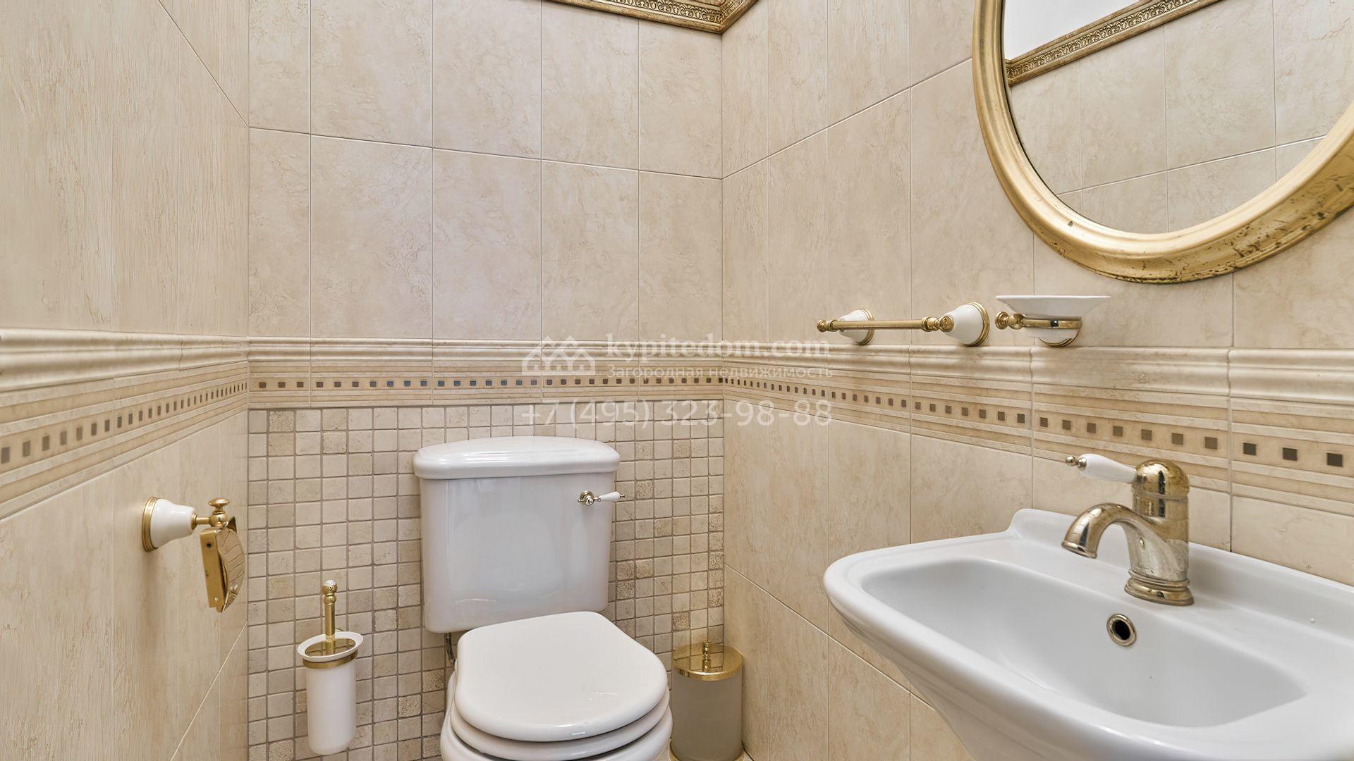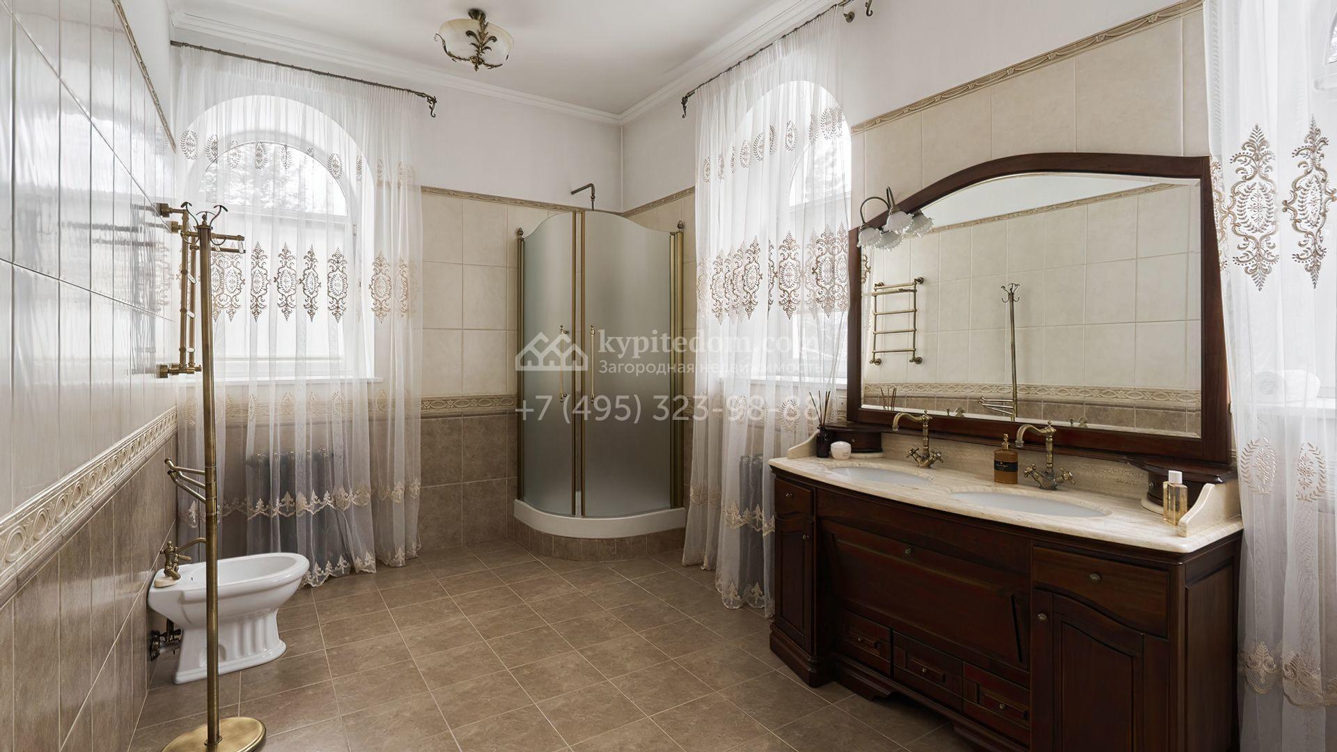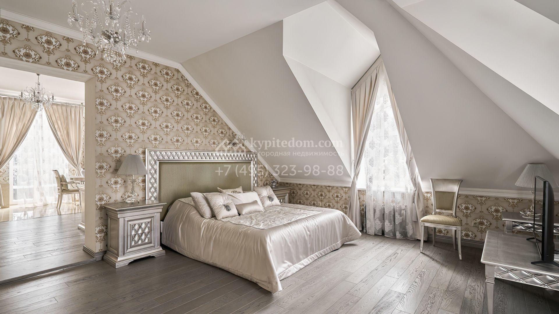 Интерьеры укомплектованы дизайнерской мебелью и техникой от ведущих европейских производителей. Планировка включает 2 спальни с санузлами, гостевую спальню, кухню-гостиную с камином и кабинет. На просторном участке растут березы и ели, проложены дорожки и организовано уличное освещение. Для отдыха в кругу семьи или друзей на территории предусмотрены барбекю-зона, бассейн и гостевой дом с 2-мя спальнями, квартирой для охраны и гаражом.