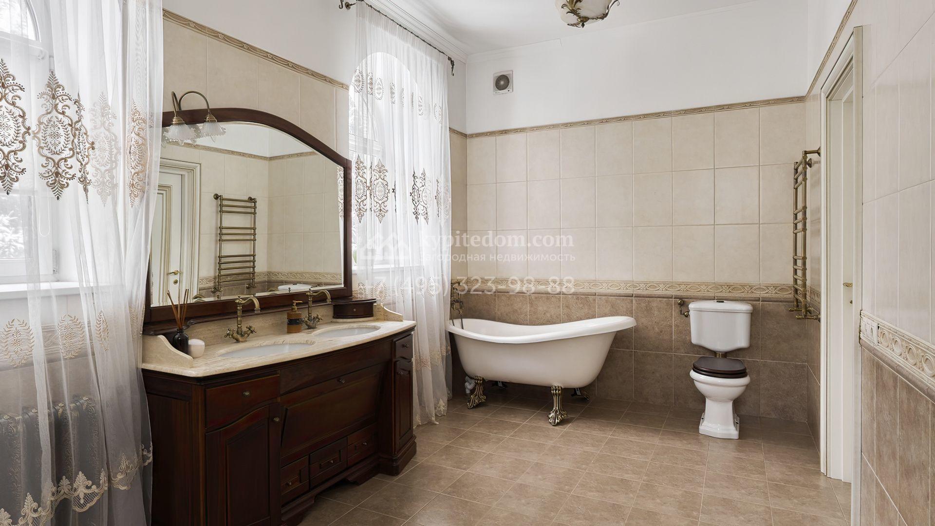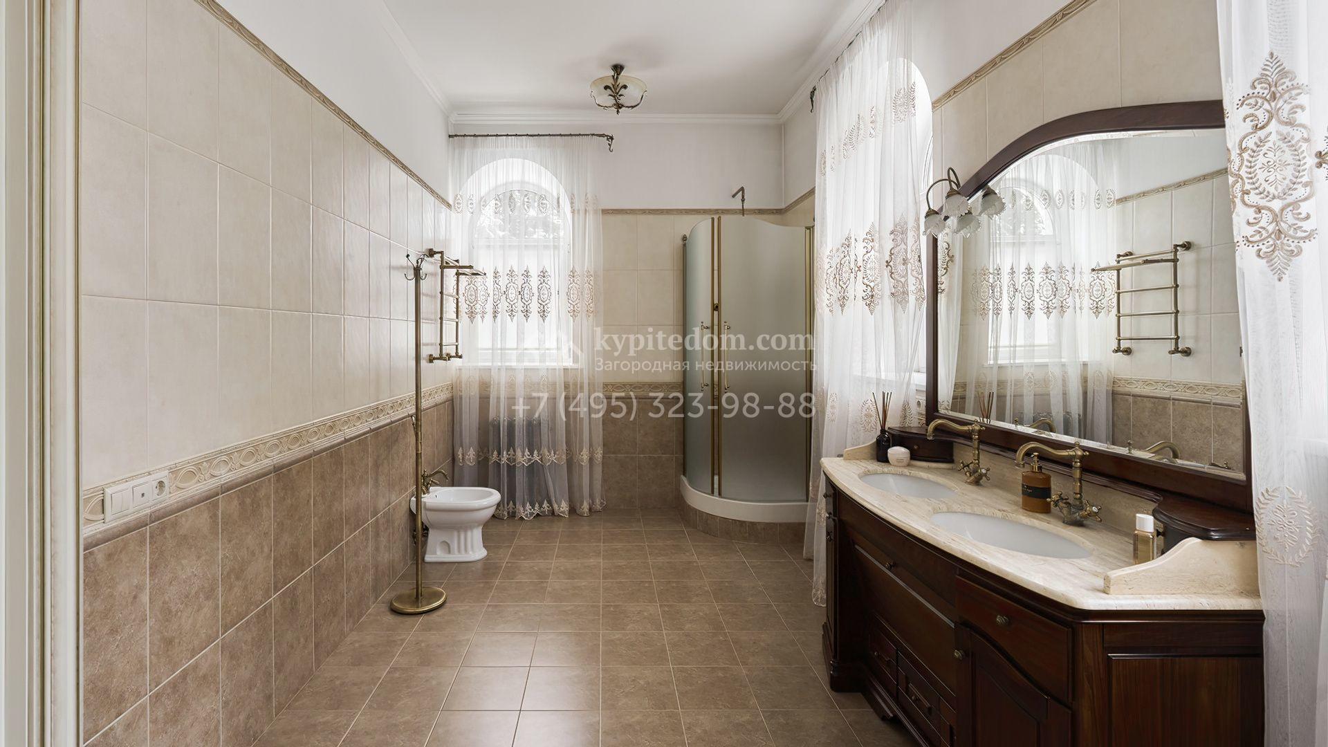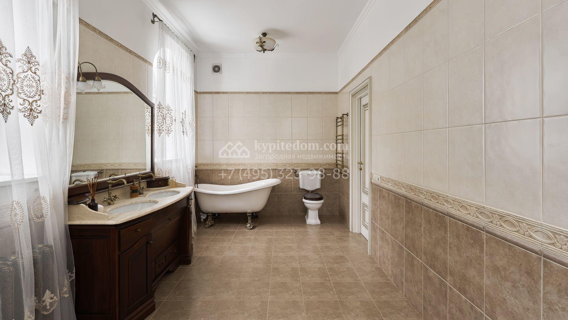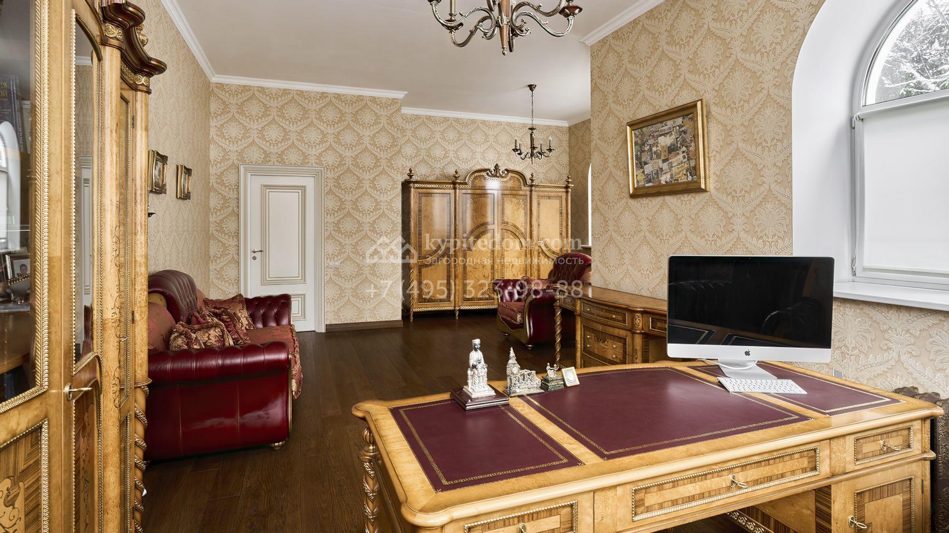 Интерьеры укомплектованы дизайнерской мебелью и техникой от ведущих европейских производителей. Планировка включает 2 спальни с санузлами, гостевую спальню, кухню-гостиную с камином и кабинет. На просторном участке растут березы и ели, проложены дорожки и организовано уличное освещение. Для отдыха в кругу семьи или друзей на территории предусмотрены барбекю-зона, бассейн и гостевой дом с 2-мя спальнями, квартирой для охраны и гаражом.